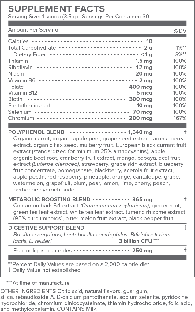 This revolutionary formula combines the power of 21 polyphenol-rich superfruits with dozens of natural fat-burning ingredients to help your body maintain higher energy levels. It also promotes improved digestion, and healthier, younger-looking skin.